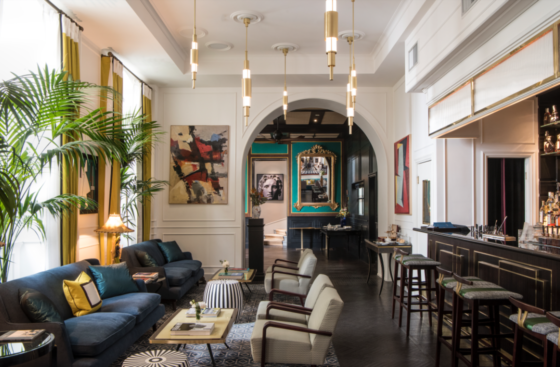 Vilòn Roma is a hidden treasure of Rome that attracts art lovers from all over the world. Its location could not be more impressive, neighbouring Palazzo Borghese and Via dei Condotti, the outstanding examples of Late Renaissance and Romanesque architecture. The rooms have a bright and colourful ambience, as well as unique eye-catching paintings spread out across the property. Contemporary art adds an inimitable grace and attracts travellers with an art appreciation. Vilòn’s suites cultivate eclectic interiors with a mix of classical and modern decor with a view of Borghese Palace Gardens. The combination of preserved historical architecture and the elegance of the modern interior is equally stunning and balances one another. Art Deco elements can be spotted next to the Rococo-style columns and portrait photography installations that strike with energy. The building itself dates to the mid 16th century, where once it was a school for girls called ‘House annexed to Palazzo Borghese’. Today, this historic mansion has been transformed into a luxury boutique hotel in the heart of Rome.