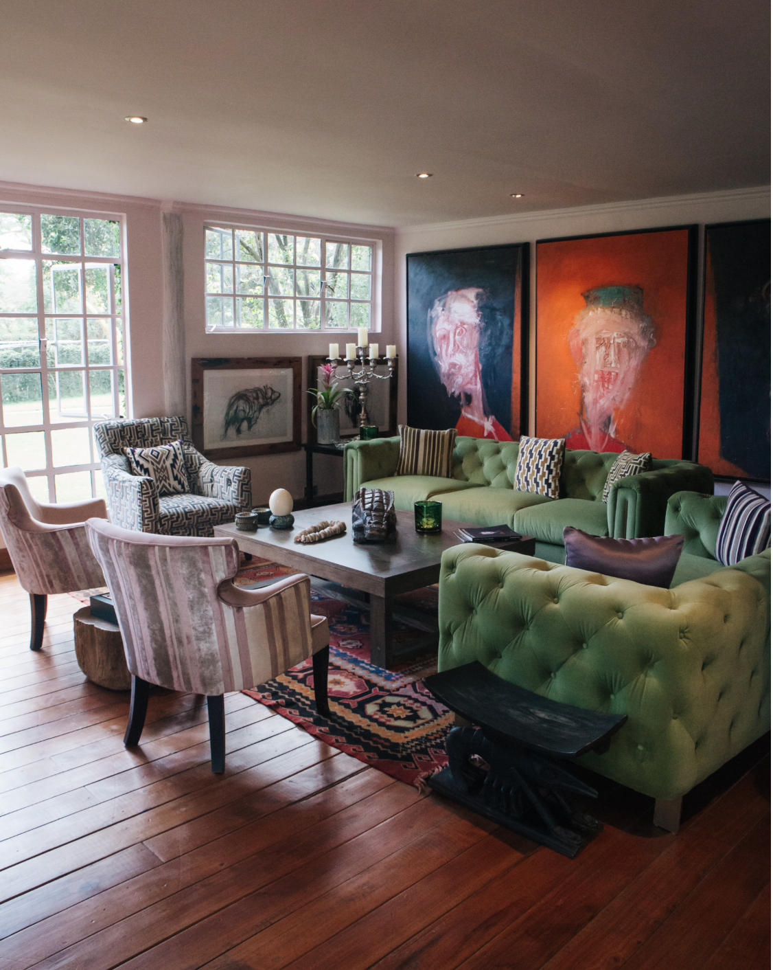 Eden Nairobi is a former family home built by Tonio and Anna Trzebinski in the suburb of Langata. Now transformed into a hotel with a living museum of around 200 paintings, ceramics, and sculptures. This place is a must-visit for people who are interested in art and authentic Kenyan journey. The property is filled with family artworks, as well as cultural artefacts collected throughout a lifetime. The ceramics were made by Lana Trzebinski, while all the bronze sculptures are by Stanislaw Trzebinski. A collection of photographs was taken by friends – the artists, Mirella Ricciardi, Peter Beard, Fisher & Beckwith, Alexandra Penney as well as signed and personalised books by Wangechi Mutu, Peter Beard, Dale Chihuly amongst many other deeply personal treasures. Every room in the boutique hotel is carefully designed with hand-picked objects and artworks. Moreover, all the spaces have a specific style and character engaging guests in the authenticity of the place. Eden has nine rooms including The Artist in Residence Cottage, created for people seeking inspiration from Africa or guests desiring longer-term immersion into a modern and stylish Nairobi. Eden offers impressive and eclectic décor, pulled together by Anna in her unique style. These daring and experimental combinations of layering of colour and texture with African DNA gently interact with the vibrant green surroundings of the nature.