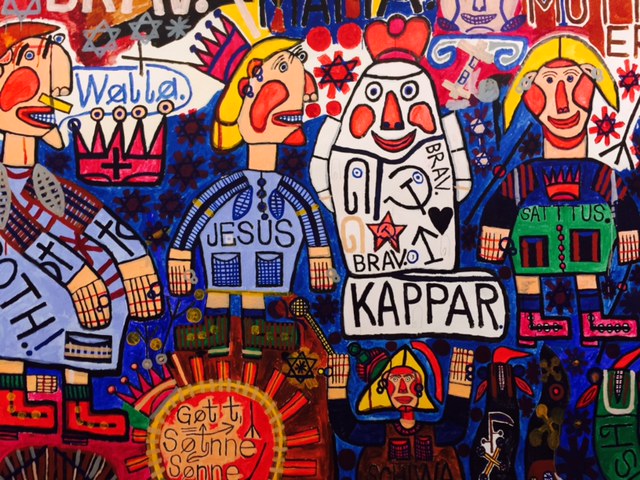 The Art Brut museum must be our favourite find of the weekend. During our visit we are treated to a brilliant outsider art exhibition of work by self taught artist and filmmaker Guy Brunet (1931) who takes his inspirations from film culture. Drawing and painting sets and characters he writes stories and screenplays creating three-dimensional works that he then painstakingly narrates and films.