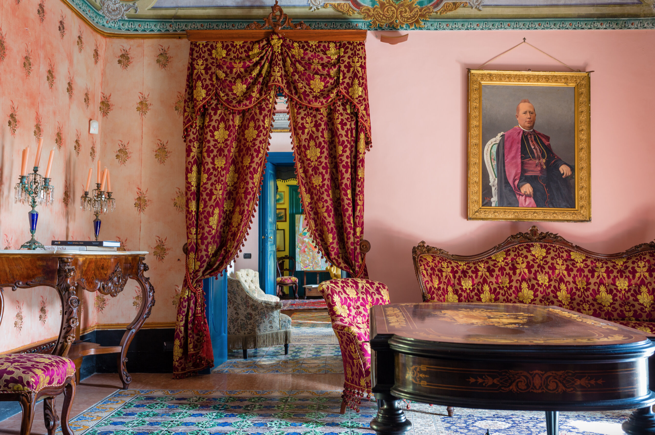 Creating a living museum within Palazzo Previtera was also a way to honour our heritage. Most of the furniture, paintings, books, and textiles have been in my family for generations, and restoring and preserving these pieces is a privilege. When I first moved in, many items were in poor condition or stored improperly, so I had to decide what to restore first. I selected contemporary design and art for the bedrooms and the cottages scattered in the gardens, and I’ve been fascinated by the stories these items carry. I even restored some old chests of drawers, transforming them into marble kitchens for the cottages.