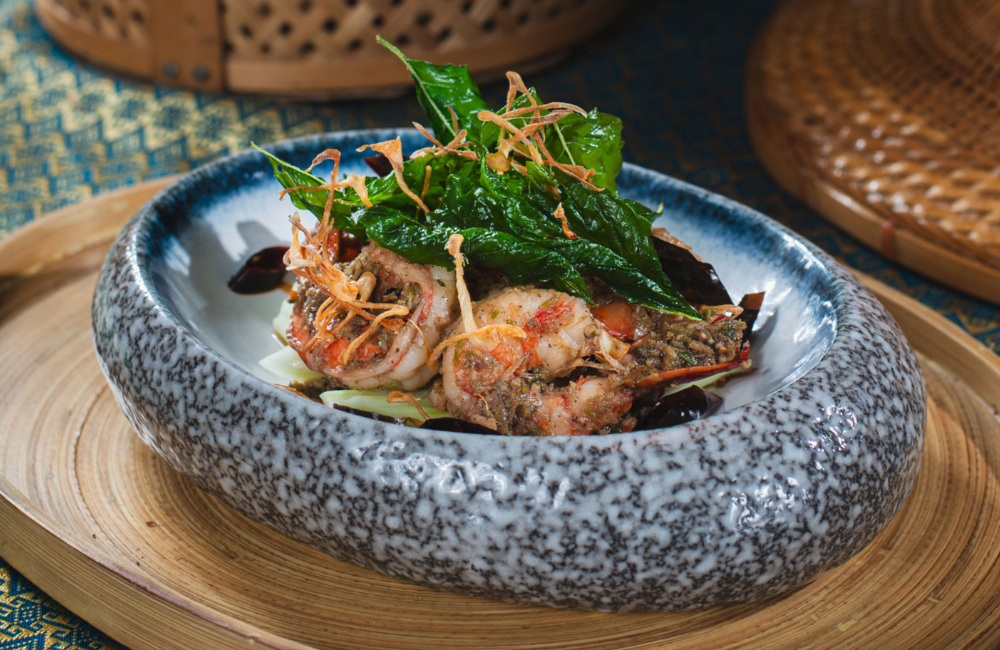Nareekansaeng – The old-fashioned stir-fried Holy Basil with Prawns taken from the Andaman Sea and full of the spices that make up the rich depth of Thai culinary tradition.