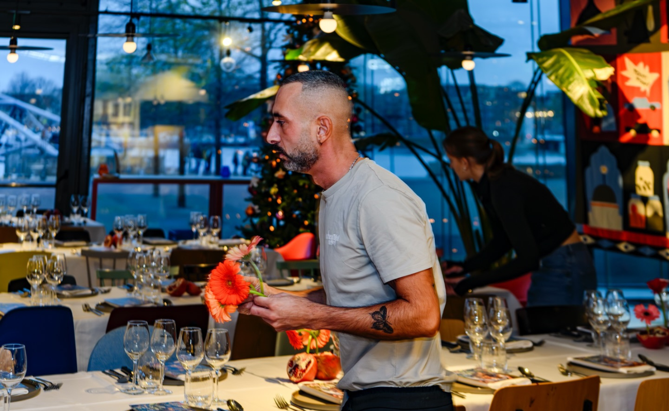 The same impulse runs through the city’s food scene, where Amsterdam’s long-standing flirtation with the avant-garde has hardened into confidence. New restaurants are emerging that experiment boldly with global flavours. Lunch at A Beautiful Mess, run by Refugee Company, consisted of shared plates of muhammara, falafel and charred flatbreads passed around a long communal table. You can taste that evolution across the city, as Surinamese and Indonesian kitchens, alongside Caribbean pop-ups, take over former warehouses, bringing with them a new generation of talent.