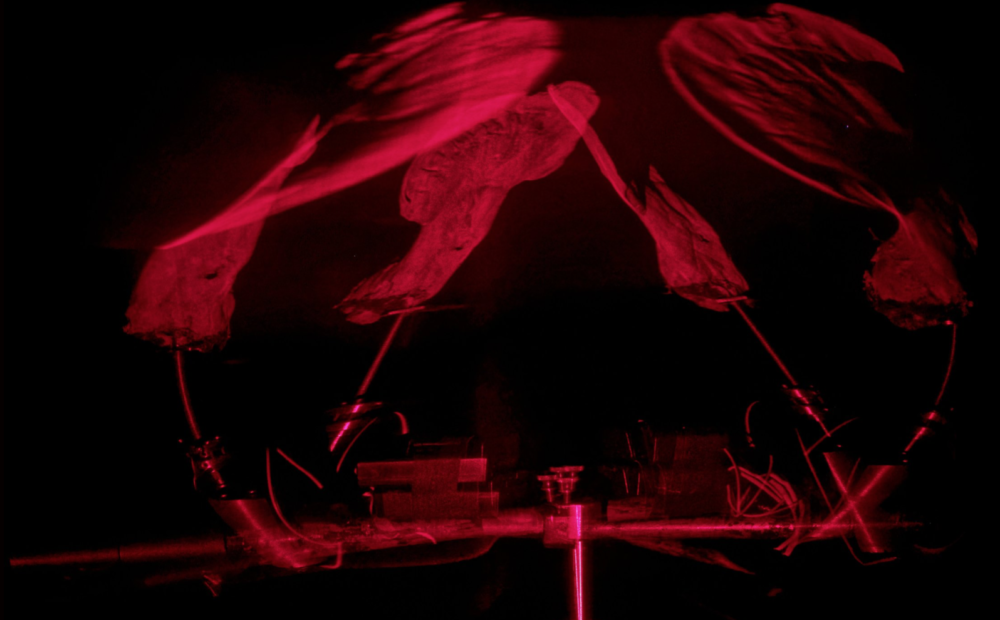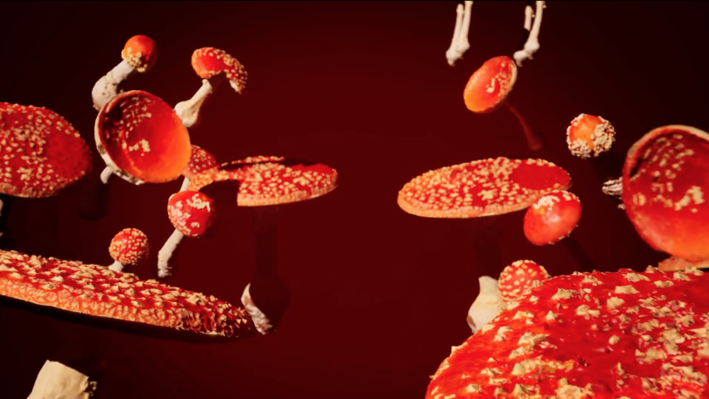 “Dream Hotel Room 1: Dreaming of Flying with Flying Fly Agarics (2024) by Carsten Höller and Adam Haar is an otherworldly dive into ‘Dream Engineering.’ Imagine this: a surreal bed, trippy projections, and a mission to engineer lucid dreams. Spinning toadstools hover above your bed, bathed in fast-moving red light at a 700 nm wavelength and 4 Hz frequency – the perfect cocktail for inducing vivid, mind-bending dreams.