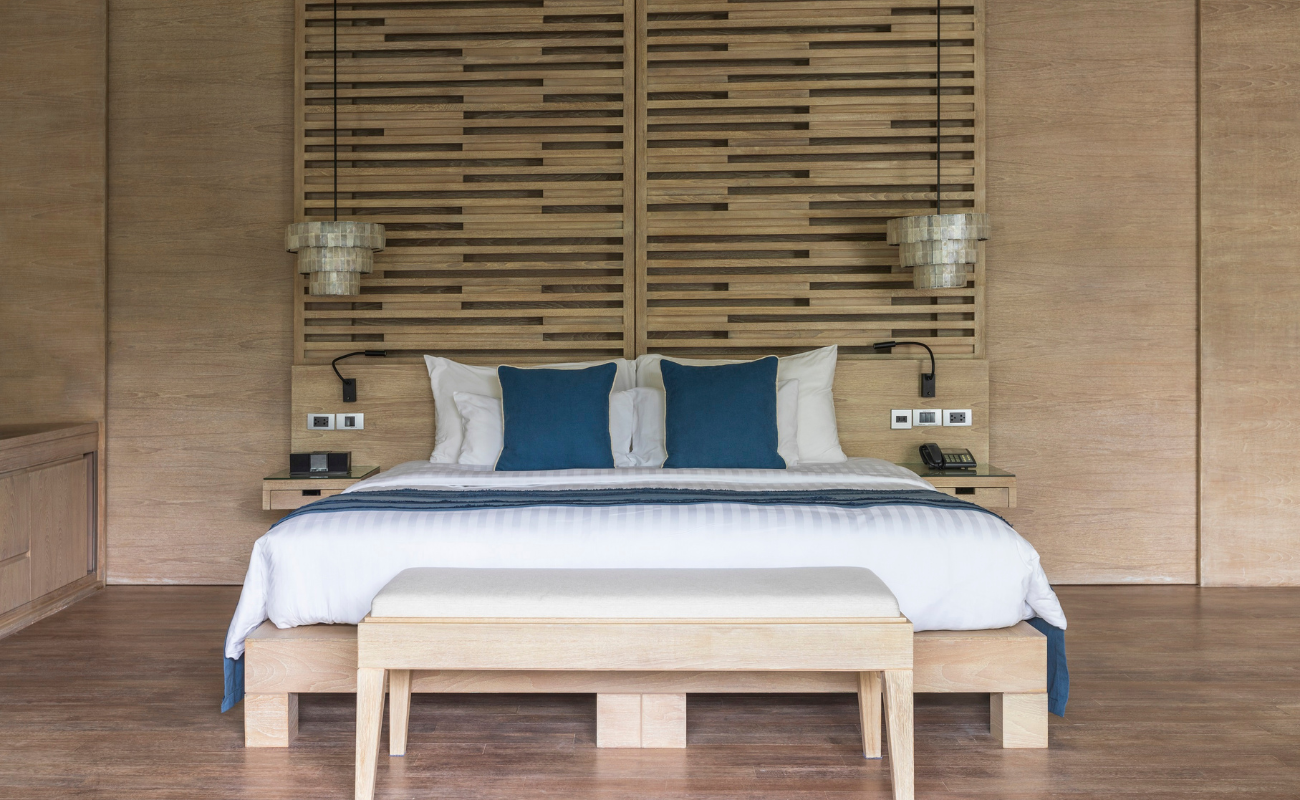 The interiors are sleek, contemporary and quietly luxurious. Natural wood tones soften the modern lines. Bathrooms are opulent without being operatic. Beds are expansive enough to make you reconsider ever returning home. This is boutique hotel luxury in Hua Hin with genuine spatial generosity.