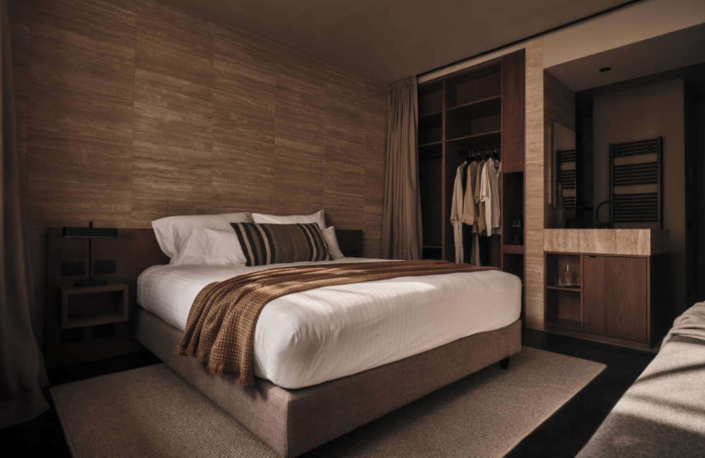 The result is a 50-room boutique retreat that feels more like a stylish mountain lodge than a “resort.” Sustainability runs through the design too, with locally sourced materials, thermal insulation, and organic textiles creating a space that feels rooted in its setting rather than imposed on it.