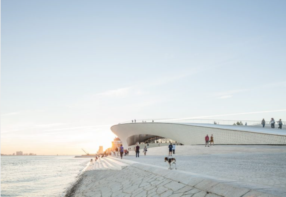 Lisbon’s MAAT (Museum of Art, Architecture and Technology) on the Tagus River is a symbol of the city’s sleek architectural modernity amid its historic streets.