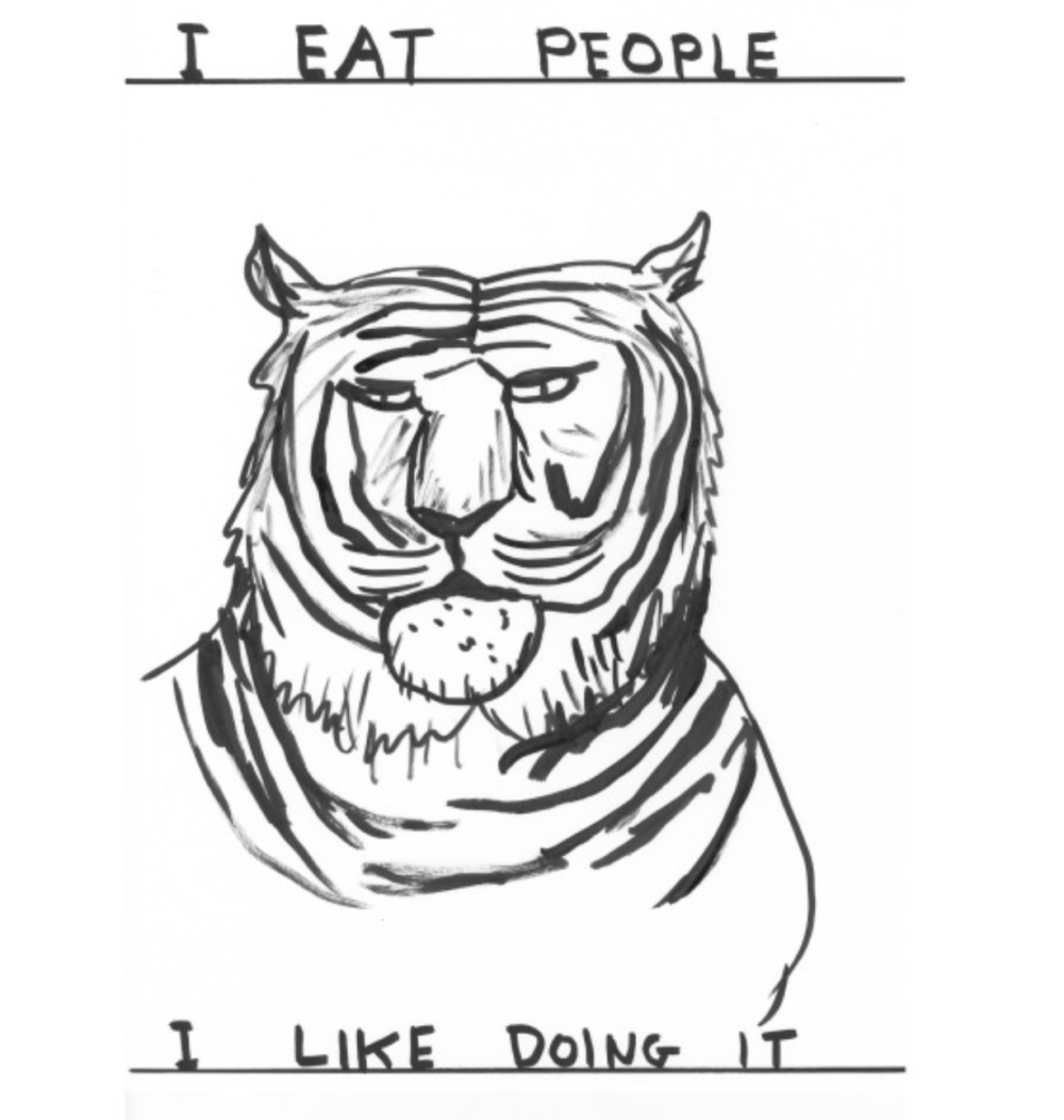 David Shrigley does a mean Mick Jagger impersonation, all messy vowels and variable volume. He can probably do the walk too, as he seems to be able to turn his hand to pretty much anything he puts his mind to. Best know for his deliberately simplistic but hauntingly dark cartoons and books, Shrigley has made music videos for Blur, animations and even an album of his own — which had everything except the music.
