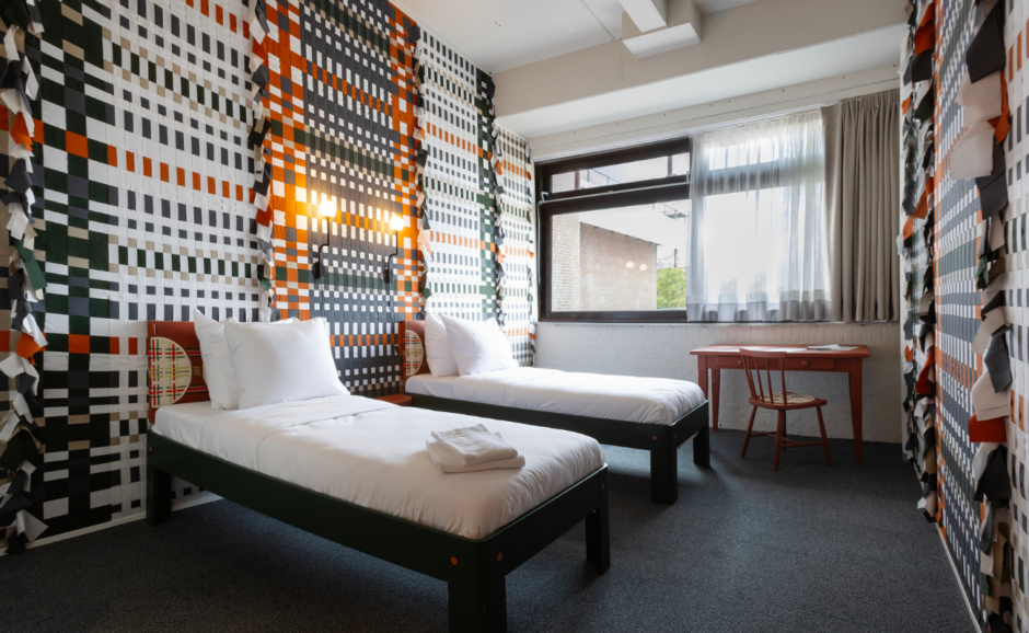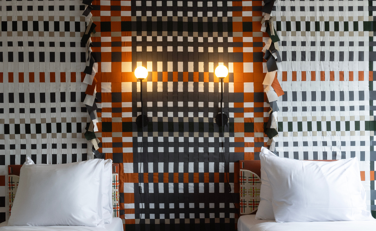 Its most immersive statement yet comes in the form of Dreamweaver, a guest room conceived by textile artist Amy Lewis. Created through an open call that invited artists to design a hotel room using only waste materials, Dreamweaver transforms surplus Sunbrella fabrics into a cocooning, inhabitable artwork that guests can actually sleep inside for the next three years.