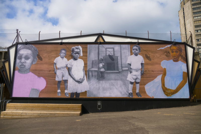 ‘Still Holding On’ by Valda Jackson of Spike Island studios in Bristol is a collage of photographs and drawings of children of the Windrush generation and is being exhibited on Dreamland’s large outdoor billboard until the beginning of October.
