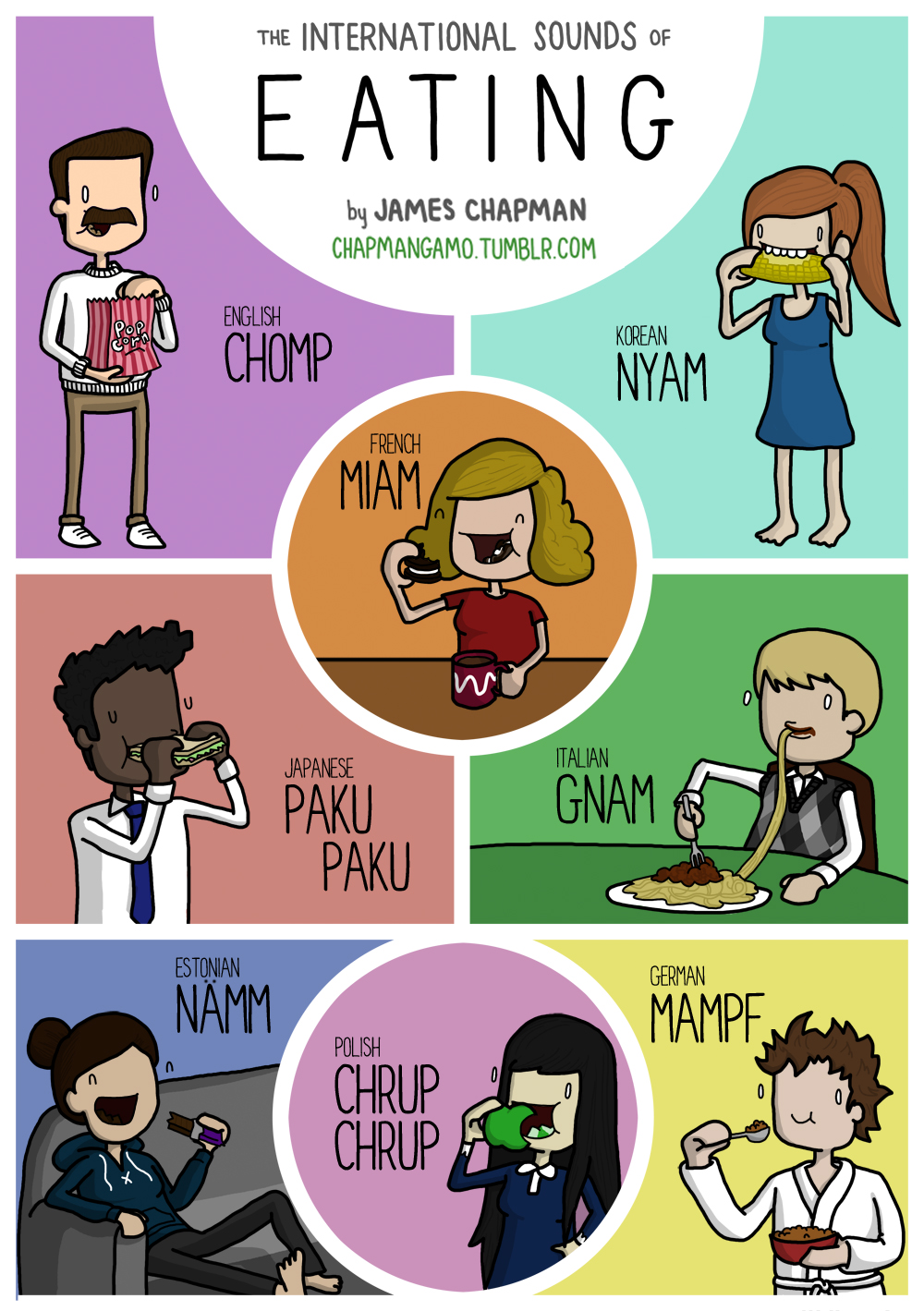 James Chapman uses cartoons to help explain comical idiosyncrasies and multi-cultural themes from across the world. For example did you know that in English, dogs go “woof”, but in Romanian they go “ham!”? Neither did we but this, along with other strange insights, form his never-ending funny work.