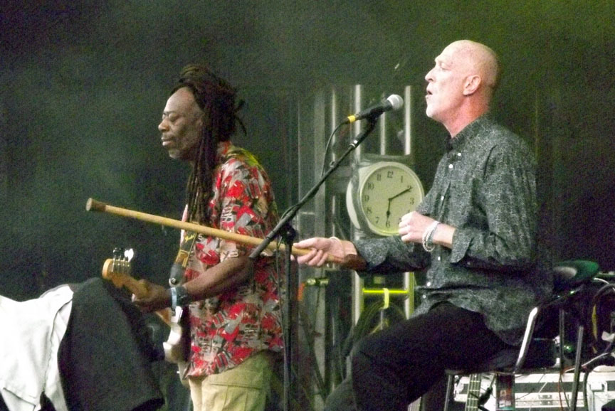 The rain subsided in time for Marianne’s bluesy growls to close the set with “Hey Ho On the Devil’s Back” but returned with a vengeance for the headline act, Emmylou Harris and Rodney Cromwell. It is difficult to hold the attention of an audience that is getting absolutely drenched by unrelenting teeming rain and especially so when singing plaintive ballads such as the tender “Love Hurts”. I felt for Emmylou, the elements conspired against her and a large proportion of the crowd sought shelter back at the campsite.