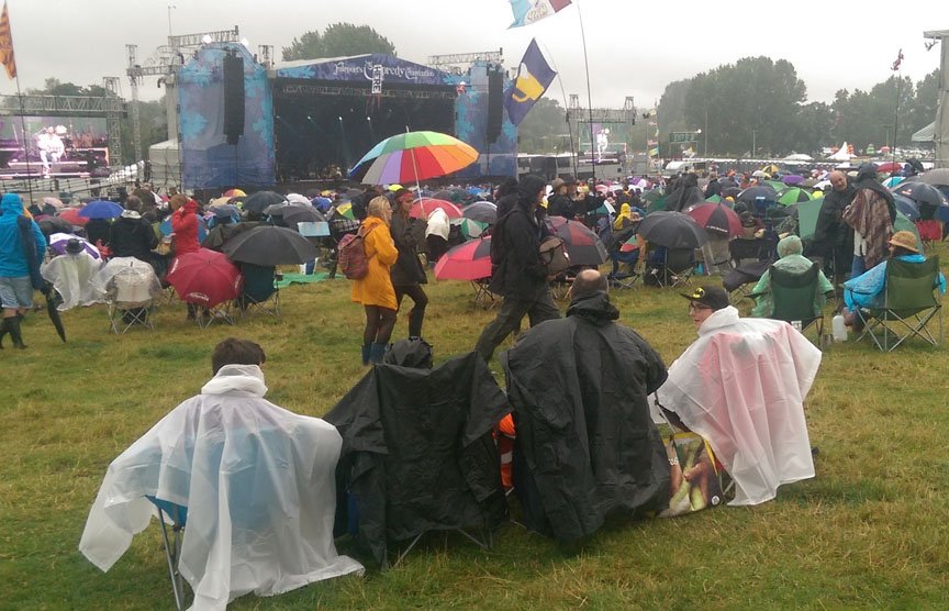 After such a deluge I fully expected that the fields of Cropredy would have become a swamp of biblical proportions having witnessed similar scenes at Glastonbury and other festivals in the past. Instead I can confidently report that the ground remained firm and that the drainage at Cropredy is excellent. Unfortunately, most of said drainage was into my tent and I awoke at 6:30 on Friday morning with my airbed surrounded by a moat and my bedding and lovely tartan pyjamas soaked through. Apologies to any passers-by who were unfortunate enough to witness a large, pale naked man contorting himself inside a 1990s cabriolet but I had no option than to dry off and dress inside my car.