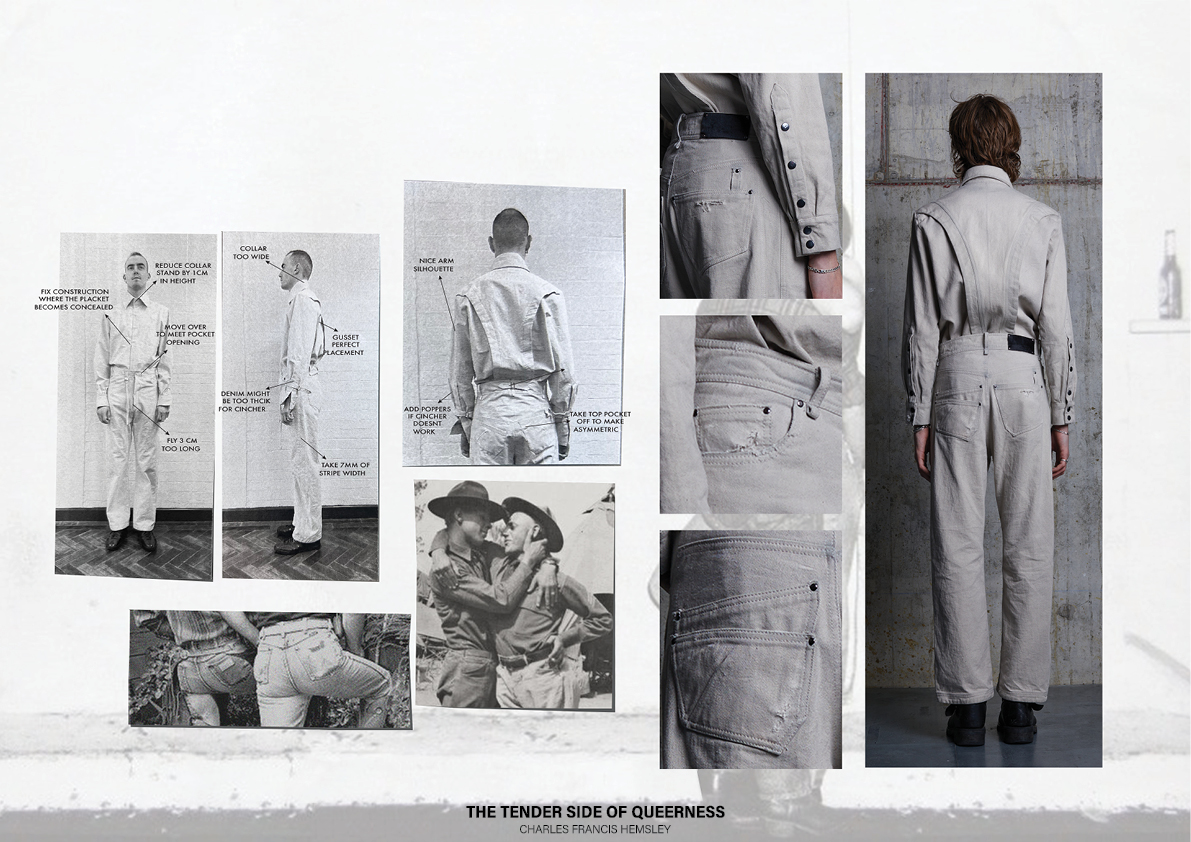 Among the designs from this year’s Kingston School of Art BA (Hons) Fashion show, the work of Charles Francis Hemsley nuked the catwalk. Hemsley’s collection, deservedly named winner of The Outstanding Menswear Collection, aims to challenge traditional menswear clothing norms by creating wearable designs.