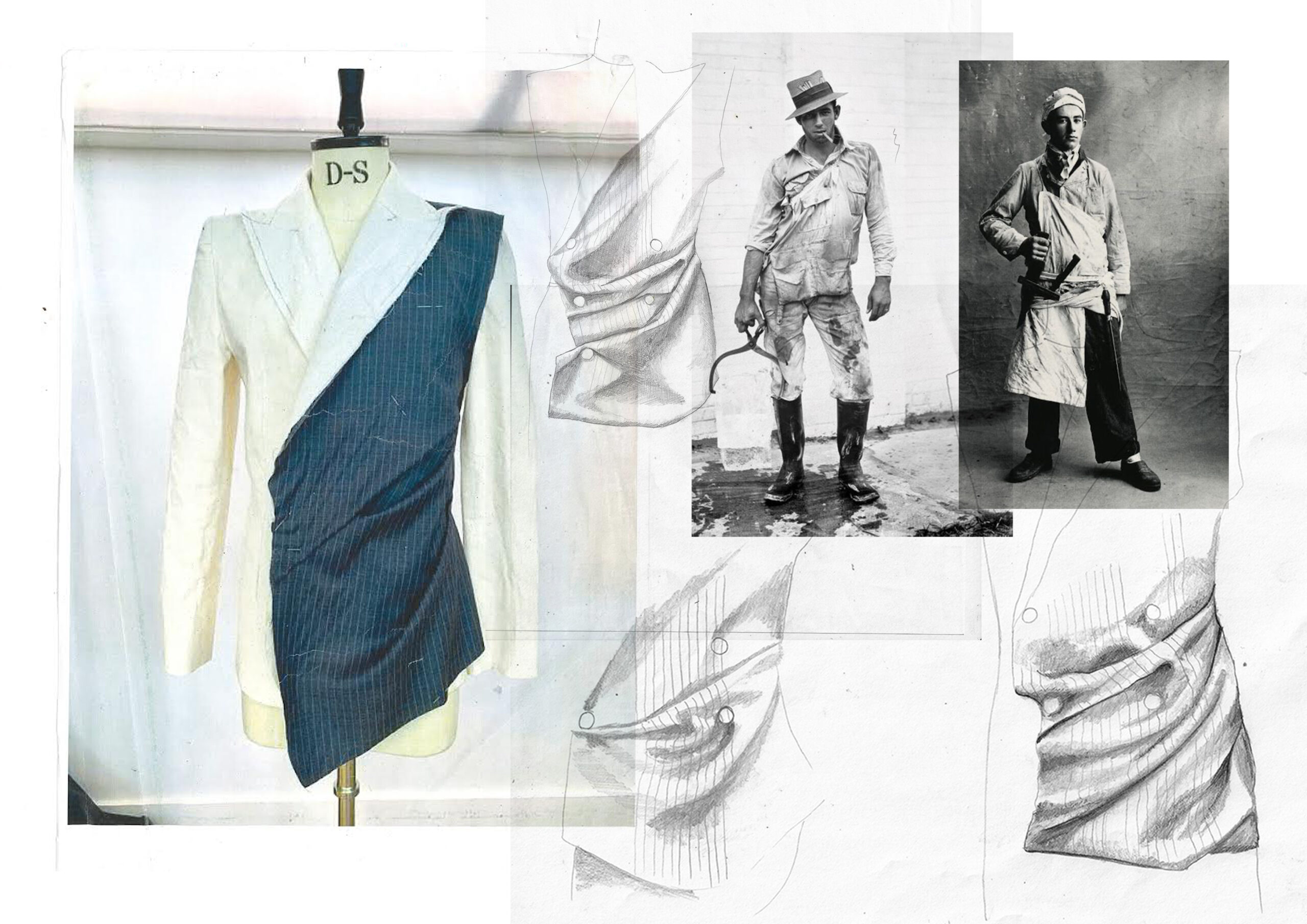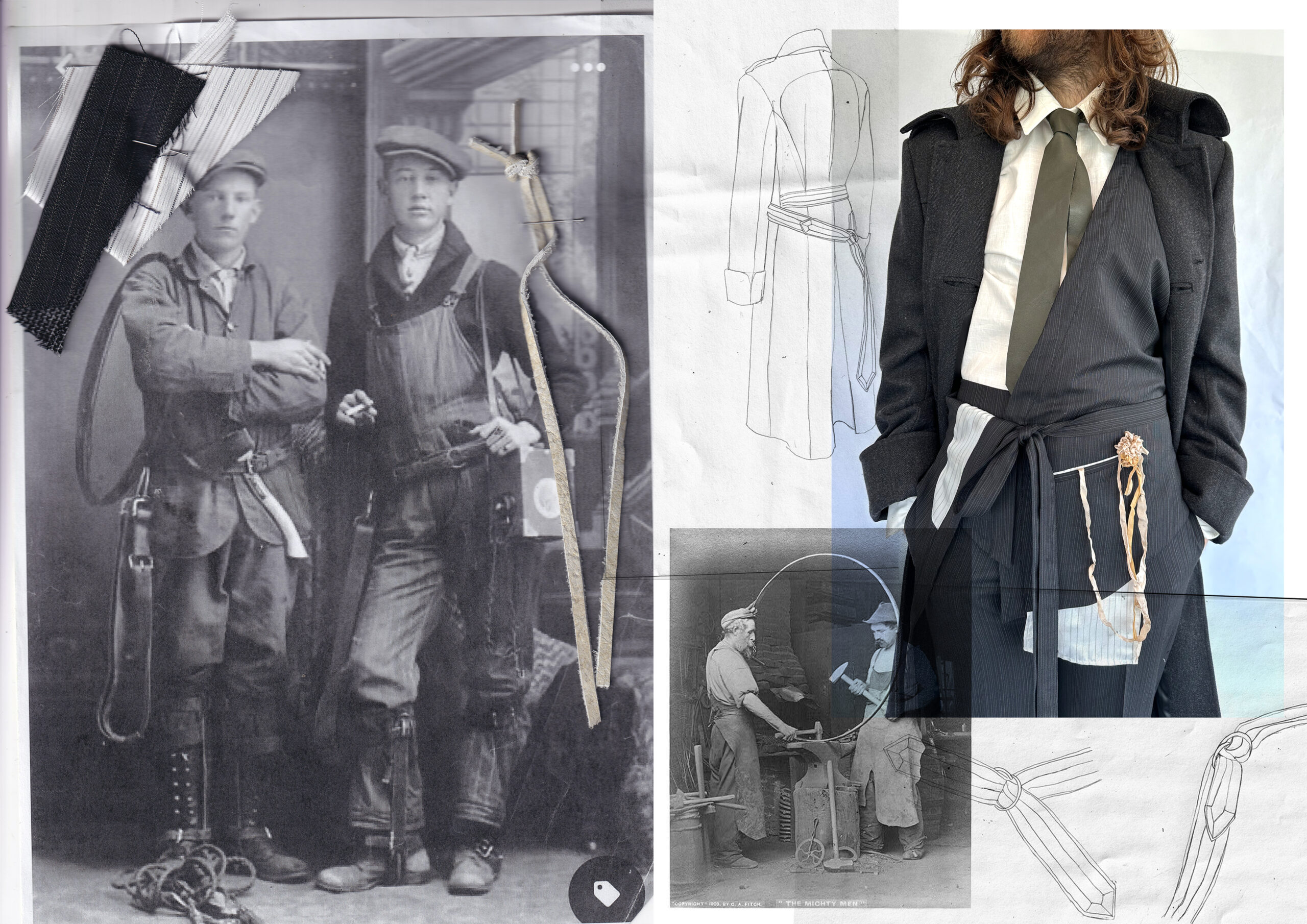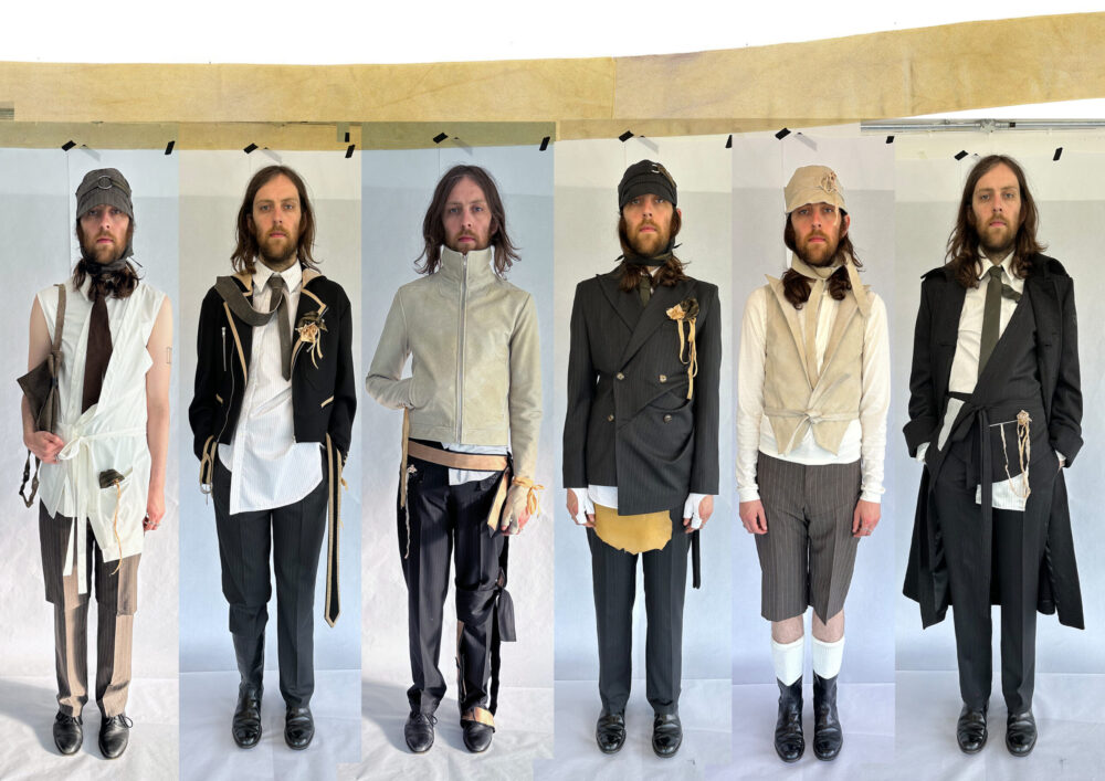 Navigating through the portfolios, CVs and occasional press releases during GFW, it was within a visit away from that lucrative herding of hopefuls and hopeless in Bethnal Green to the University of Westminster on Marylebone Road at the height of summer 2023 that I was struck by the sourcing of vintage workwear images unearthed by designer Lottie Grace Robinson and illustrations of real and wearable menswear that reminded me of all manner of creatives who had put their life energy into creating such looks, no longer with us. The 80s, when style bibles such as i-D, Blitz and The Face actually meant so much more than online clicking about. There’s not much value in a like.