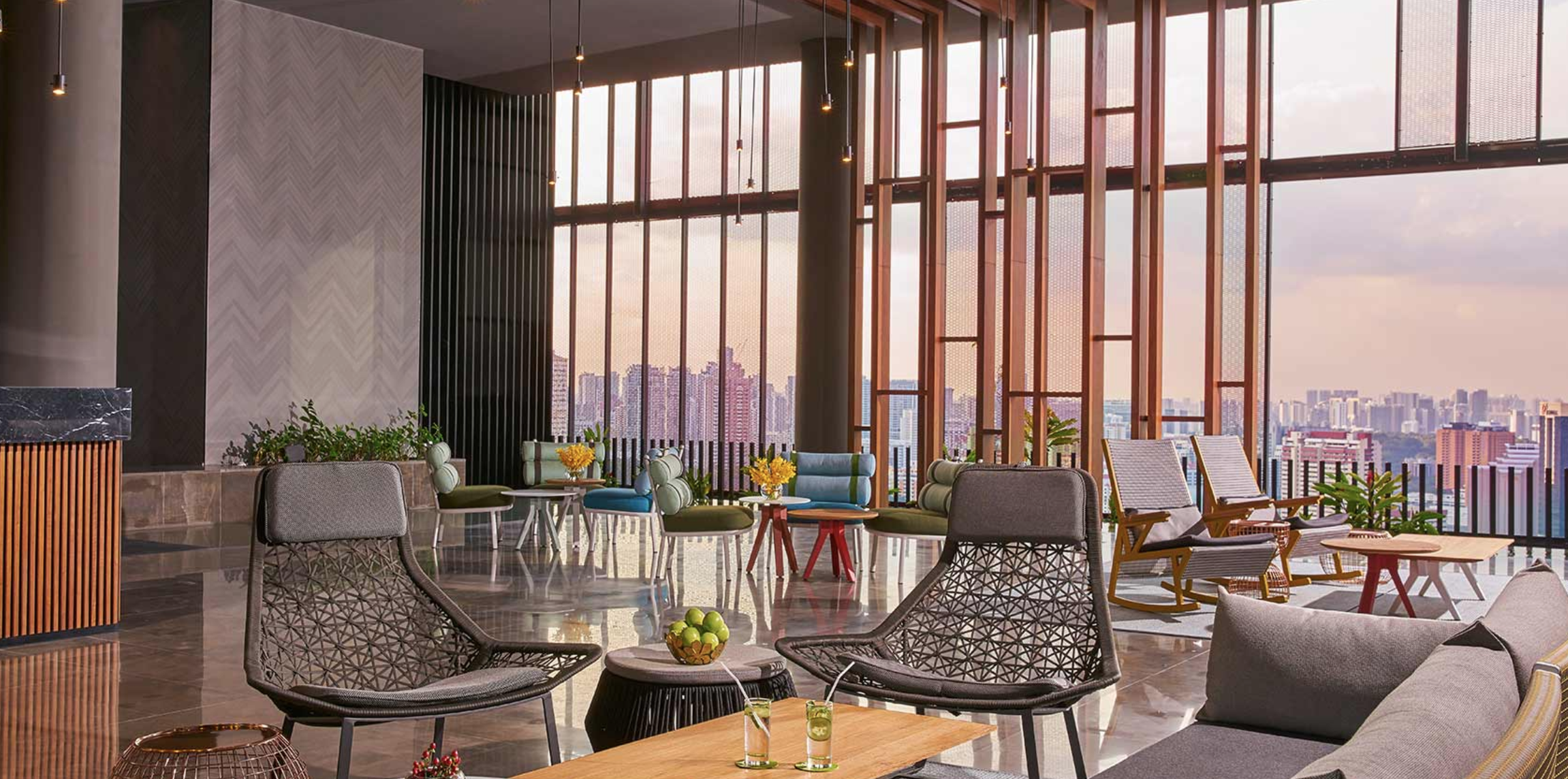 One of the jewels in Oasia’s crown has to be the 22nd Floor ‘Living Room’. Open to Oasia Club guests you’ll get to swim in one of Singapore’s highest hotel views with stunning views of the skyline or relax in the Jacuzzi. There are sun loungers if you need some R&R from the city and complimentary cocktails and canapes are served up by the friendly and helpful staff from 6pm to 8pm.