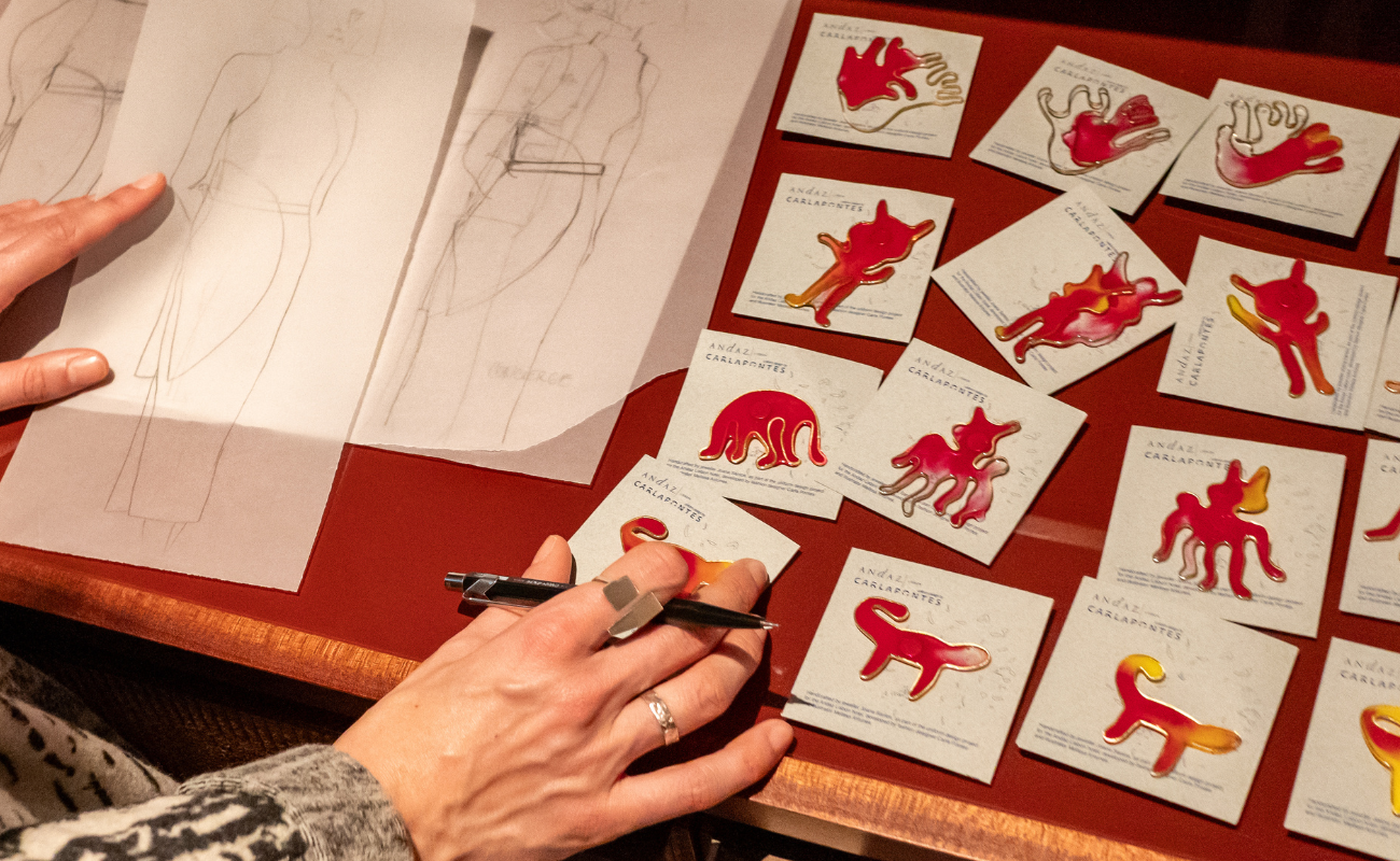 “When we began the creative process, I immediately understood that Andaz hotels express a singular, innovative, and creative kind of luxury. I also knew that in Lisbon the hotel would be housed in a building with classical architecture. This context aligned perfectly with my design language, so it felt natural to conceive pieces that deconstruct the rigidity of classic hotel uniforms, giving them contemporary freshness while refining the image of luxury. As a complement, we needed a strong theme that would help us tell local and national stories. Figurado de Barcelos, which I know very well, is a form of popular art in which each figure tells a story, recalls a legend, or represents a mythological or everyday character. It holds a deeply expressive and distinctly Portuguese richness. These figures are reinterpreted through prints, embroidery, and jewellery that complement the uniforms. They also indirectly influence the choice of colour palette, as well as the slim or rounded silhouettes, depending on the department. To develop these important details, I collaborated with illustrator Melissa Antunes and jeweller, Joana Santos.”
