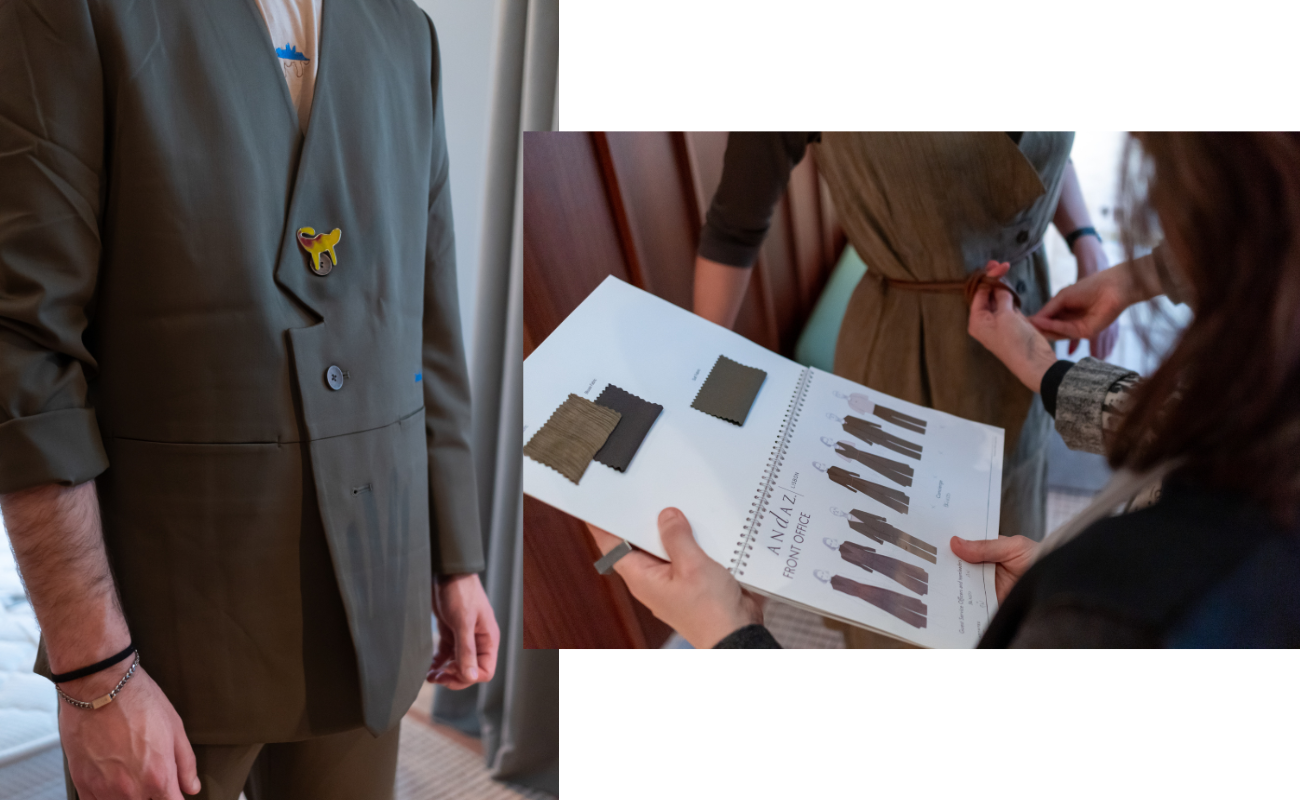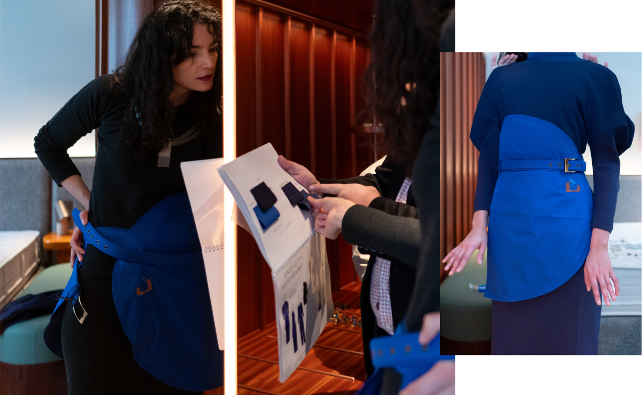 These pieces balance structure and fluidity, comfort and elegance. How did you approach merging your own minimalist, process-driven language with the Andaz brand identity while ensuring the uniforms remain practical for long working days?