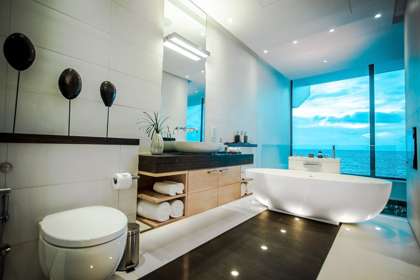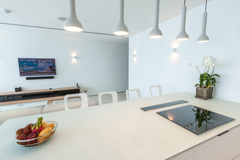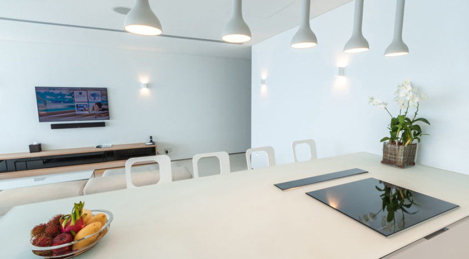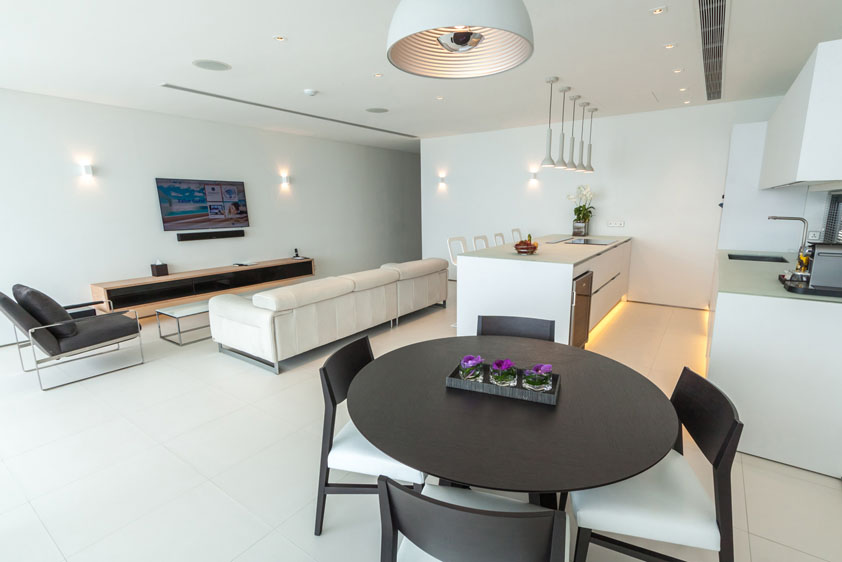 The sleek modernist design is somewhere between super-luxury yacht in the French Riviera meets Miami rockstar party pad. The villas are finished with pristine white furnishings, hi-tech facilities, a full kitchen (incase you want to bring your chef with you of course) and a mini bar that is packed full of fine wines and champagne (best keep a lock on that then!).