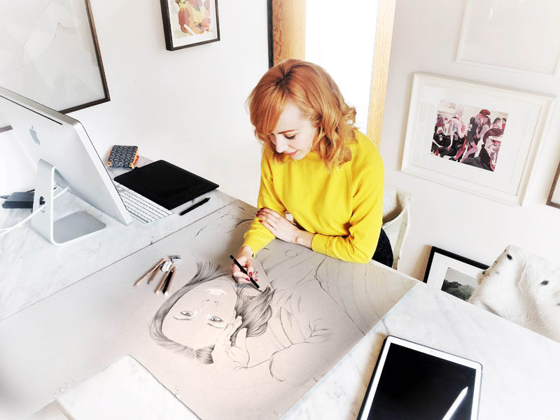 Kelly Thompson is an illustrator extraordinaire, fashion photographer and art director currently living in Melbourne, Australia where she creates intricate and refined artworks using an elegant combination of hand drawn line and Photoshop colouring. An embryonic career in fashion photography soon developed; inspired and stimulated by the models she photographed Kelly began to encapsulate her subjects as modern and sophisticated illustrations that have been published by notable fashion publications as well as brands such as Tag Heuer, M.A.C Cosmetics, Nike and Apple gaining Kelly a steadfast following of devotees.