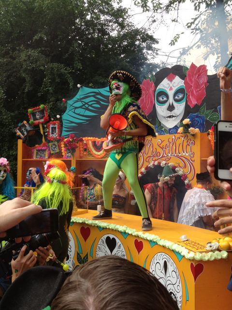 We are asked to write our worries for the day (that there will be rain in my case) on luggage tags by girls dressed in decorated cardboard boxes. The tags are attached to a large balloon of the globe and will be sent in to the air to ‘wish away our worries’. It kind of works, although there is some rain in the early evening everyone is having such a good time no-one seems to really care.