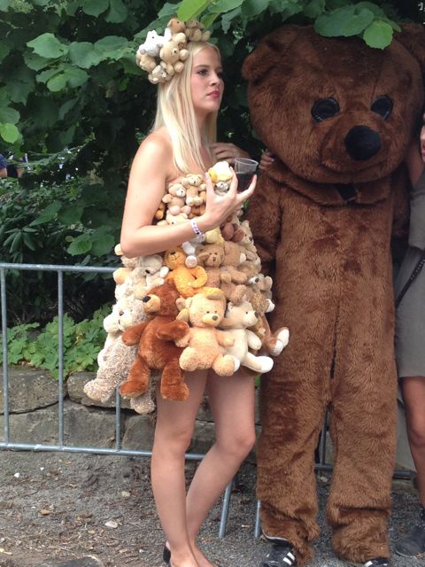 There are 15 stages and tents and I am sure we only get to half of them. Even after several circuits we find new things to explore each time. This includes a garden of teddy bears, balloons on the lake, some large knitted Kanye West glasses and a freak show. It is random but it works.