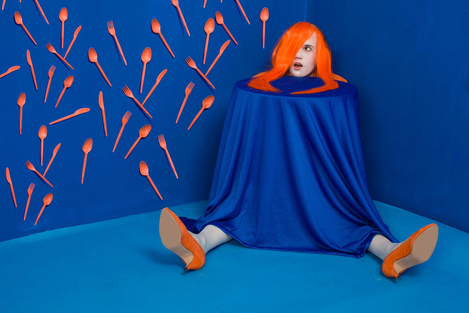 Did you know that chryosophia means a fear of the colour orange? Alexandra Darby, a University of Wolverhampton graduate, devotes a series of photographs to the subject and in so doing has blurred the lines between fine art and fashion photography. Possibly the most surreal of all the New Art West Midlands 2015 entries.