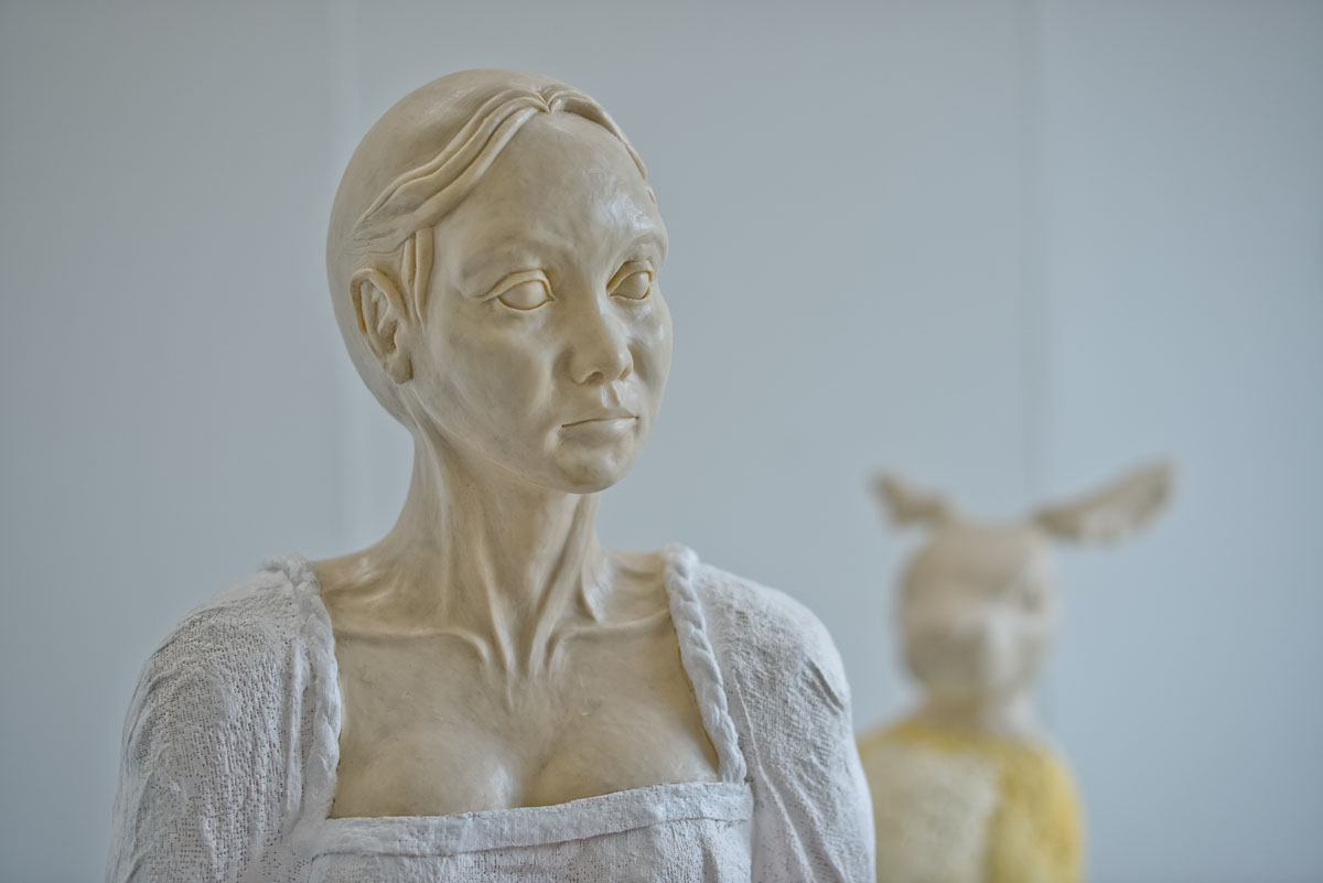LISA NASH (pictured top): Look out for Lisa Nash’s unsettling sculpture of a woman cradling a baby rabbit in her arms, with a larger rabbit watching on. Inspired by Alice in Wonderland, Lisa’s work explores the relationship between humans and animals – but she cunningly leaves it up to the viewer to decide what they think will happen to the baby rabbit.