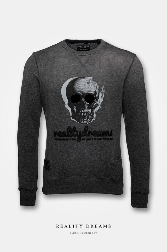 We’ve been rocking this premium quality Skull sweater detailed with Reality Dreams branding along with an embossed leather patch and small pocket on the front of the garment. The sweater has a subtle vintage effect throughout with slightly worn cuffs and neck along with a vintage wash effect to the top half of the garment. The front of the sweater has the Future design with applique writing and printed skull. A comfortable and stylish slim fit sweater that looks great with a pair of jeans and your best trainers.