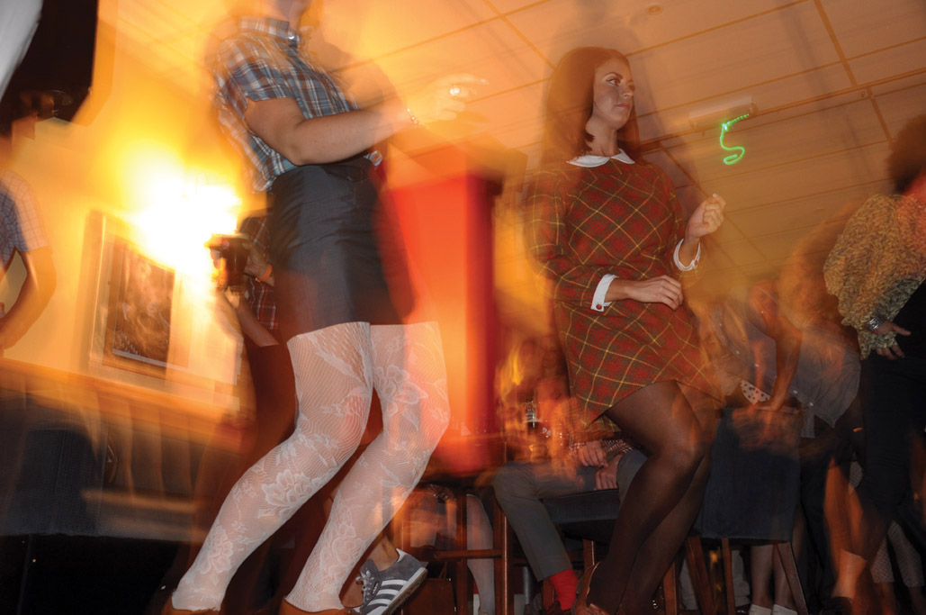Kirby Harris, 22, from Kent is a regular at such Ska-dominated events. The hair and make-up is Twiggy, with a twist. The fabrics are all man-made – fierce Polyester, satin-feel viscose. Vintage purchases are picked up at a snip, then fitted to perfection, outcooling what the high street has to offer.