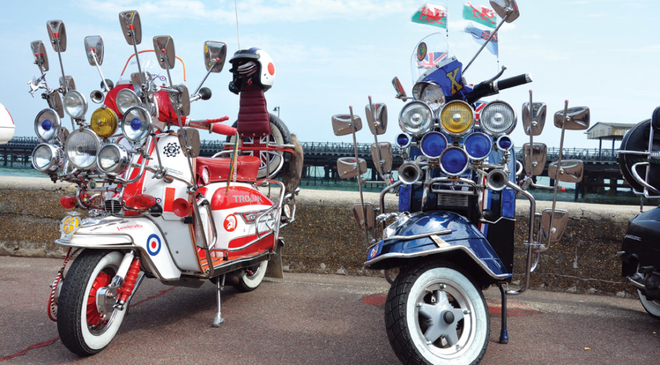 The last strains of English eccentricity are evident at specialist annual events, such as the Isle of Wight’s scooter ride out each August Bank Holiday weekend. From the customised American Fish Tail Parkas to the Vespas and Lambrettas at Smallbrook Stadium and alongside the Ryde Superbowl, new takes on 60s and 70s styling feel playful and fresh.