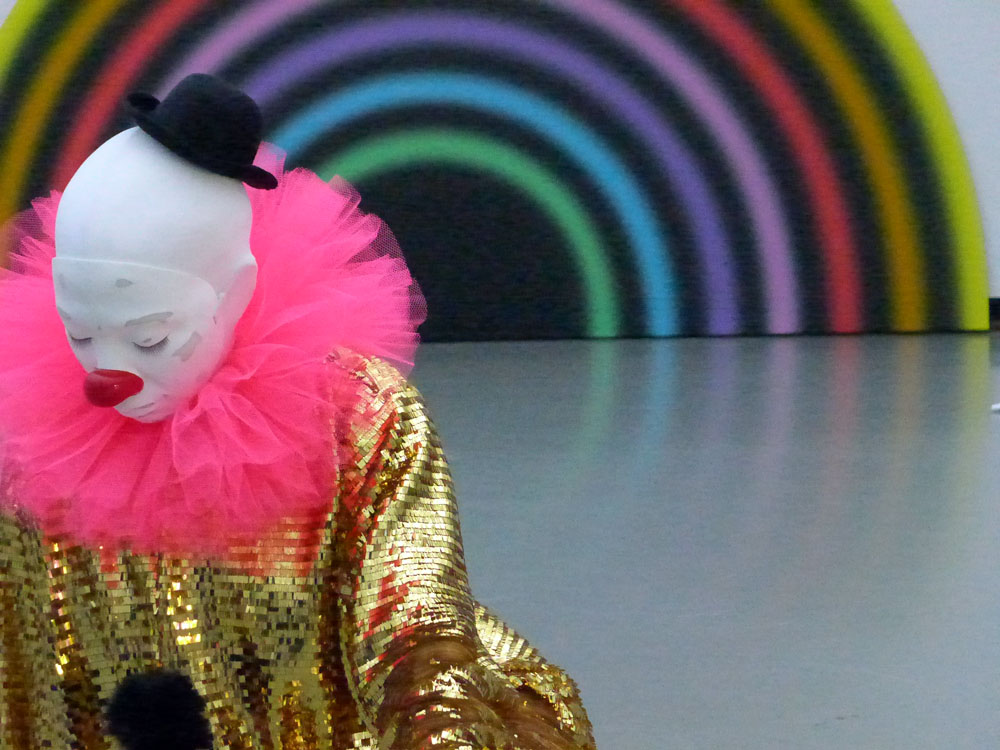 Rondinone’s ‘Vocabulary of Solitude‘ sees an installation of new and existing works that cover the colour spectrum and include 45 life-size passive clowns displayed in various positions. Each clown is named after an every-day activity: dream, sleep, yawn, read – and aim to show a person’s solitary day at home.