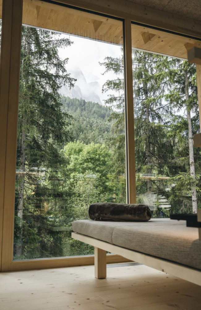 The hotel itself is exactly the kind of place you want to return to after a day of earnest sketching. All spruce wood, soft lines, and mountain views that make you question why you live anywhere else. There’s a spa with saunas, pools, and yoga, and every evening ends with a six-course dinner and a choice of 70 wines, because creative breakthroughs need fuelling.