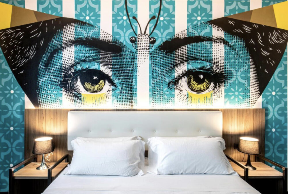 Just minutes from Verona Airport, Muraless Art Hotel immerses guests in Italian culture and street art. Each room is uniquely themed, from Caravaggio to Versace, curated by Chiara Canali. Highlights include murals by Mr. Brainwash and tributes to Italian icons like Fellini and Monica Vitti. The hotel’s “Adopt a Room” initiative lets guests support the evolving art experience, making every stay a vivid journey into Italian creativity.