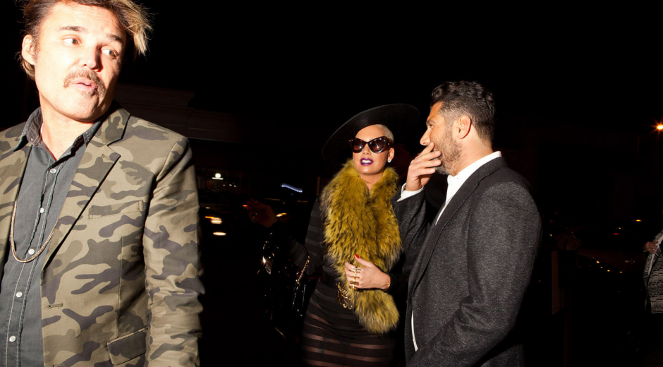Notable guests included Arnold Schwarzenegger, Jack Nicholson, David Hockney, Pamela Anderson, Steven Tyler, David LaChapelle, Jeremy Scott, Michael Chow, Amber Rose, Udo Kier and Ralf Möller. Ethan Russell, who photographed the band on their notorious 1969 U.S. tour, and Guy Webster, who shot the cover of the bands U.S. album Big Hits (High Tide and Green Grass), were also in attendance.