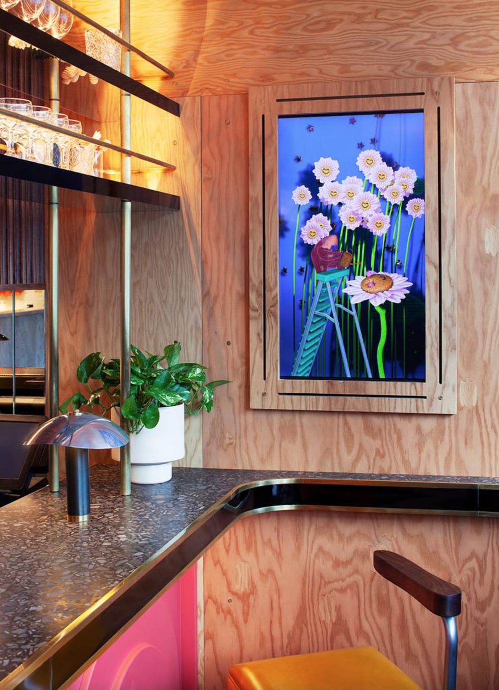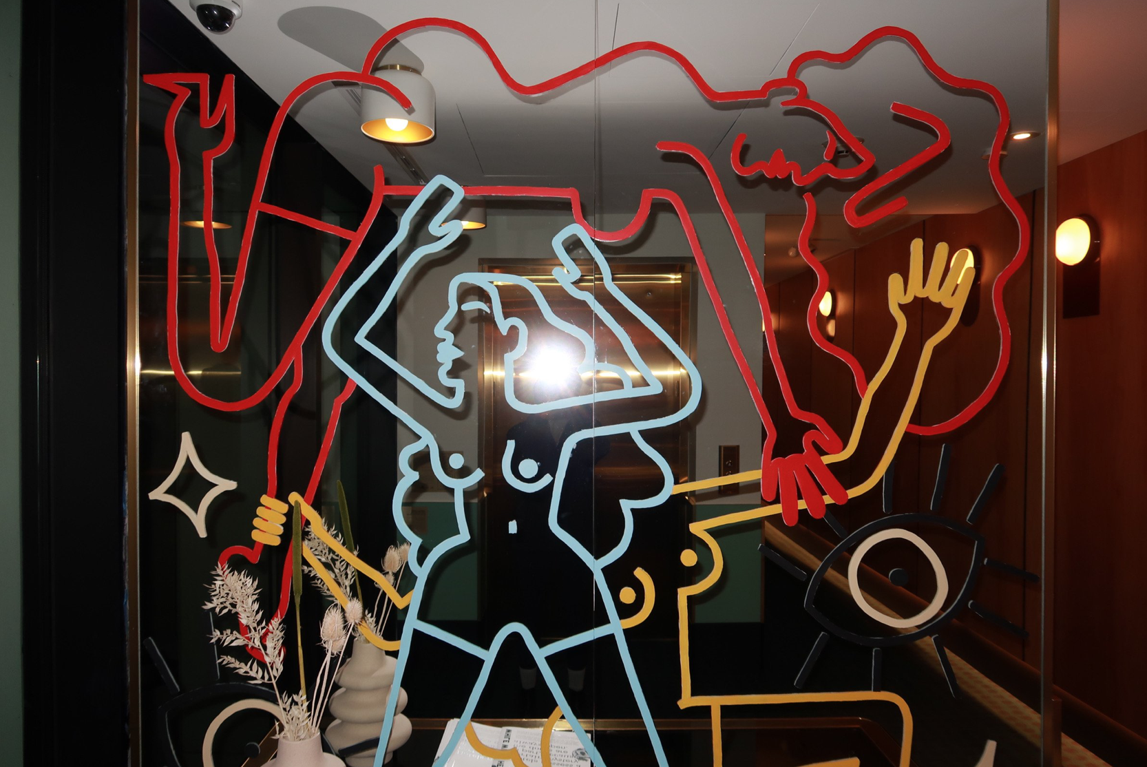 Some of the standout art installations at the property include the the voluptuous reception desk (above), which is more sculpture than table — by Toronto based design studio Odami and the striking painted mirror murals by local artist Sarah Alinia Ziazi (pictured below).