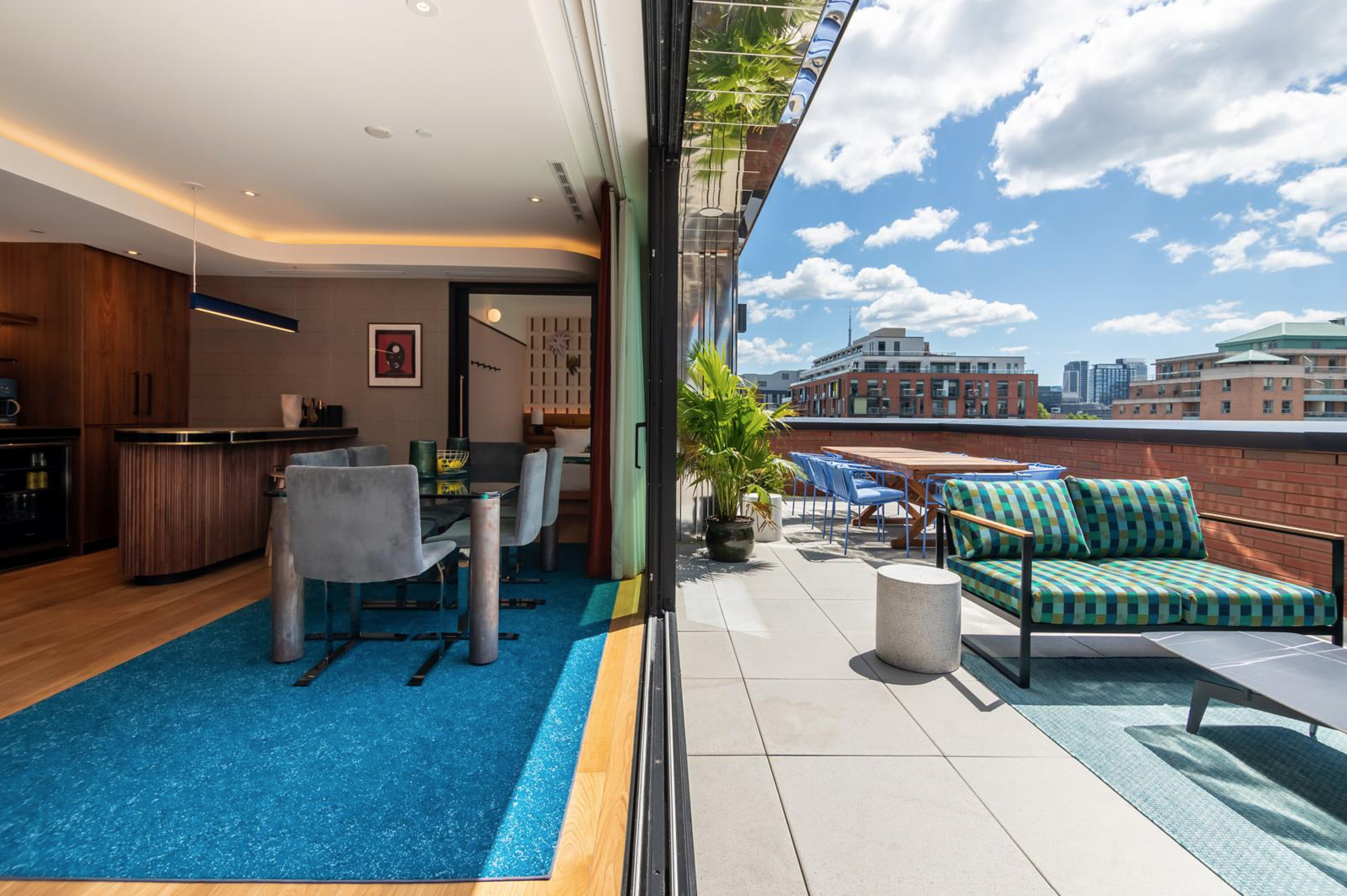 Another impressive design element of The Drake Hotel is the rooftop Sky Yard, which features a fully retractable roof and stunning views of the Toronto skyline. The space is filled with greenery, colourful murals and artwork, and comfortable seating areas, making it the perfect spot to unwind with a drink and take in the city views.