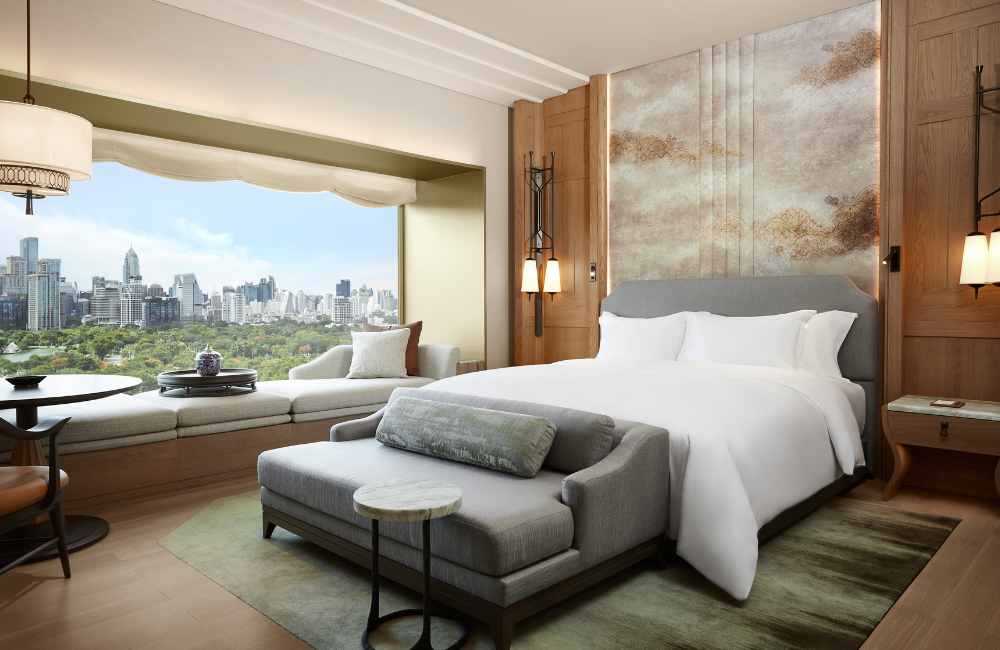Rooms have also seen a meticulous reimagining. Picture plush daybeds running the entire length of enormous floor-to-ceiling windows, framing Lumpini Park’s lush greenery like an enormous, luxurious postcard. Muted mossy greens, warm woods, and creamy marble bathrooms (complete with deep soaking tubs and Japanese toilets) prove the designer has truly thought of everything, down to hexagonal motifs lifted discreetly from the original interiors. It feels deeply comforting and a little bit indulgent—like slipping into a silk dressing gown after a very long day.