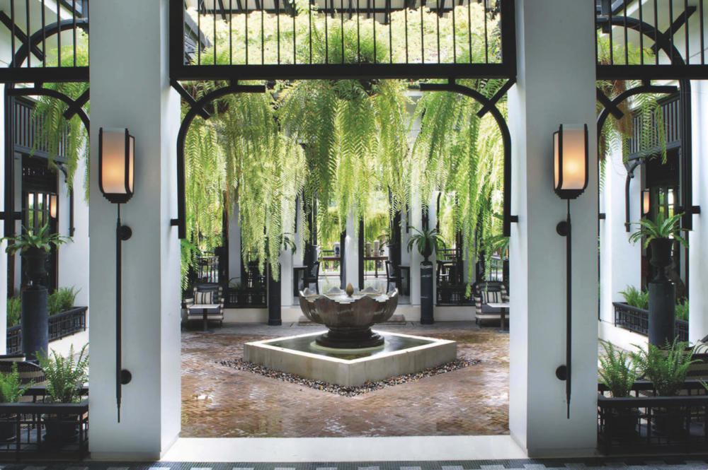 At The Siam in Bangkok, the Deco Bar & Bistro showcases the hotel’s eclectic style – note the cluster of vintage gramophones and brass instruments suspended from the ceiling. The Siam feels part hotel, part museum, filled with antiques and imaginative design details that transport guests to Bangkok’s past. In the heart of Bangkok, far from any jungle, Bill Bensley applied his storytelling magic to create The Siam – an urban luxury retreat that feels like stepping into Thailand’s bygone golden age. Opened in 2012 and set on 3 acres of prime Chao Phraya River frontage, The Siam is a 39-suite boutique hotel that Bensley has described as “a unique animal: part hotel, part museum, part resort.” From the moment you enter its art-filled lobby, you sense this place is special. Sunlight filters through a lofty atrium onto black-and-white marble floors, casting reflections in a long ornamental pool flanked by tropical greenery. Everywhere your eye wanders, something is intriguing: a gallery of historic Thai photographs here, a century-old silk fan or antique travel trunk there. The hotel was a personal passion project of its owner, Krissada Sukosol, a Thai musician-actor whose family has a legendary antique collection. Krissada teamed up with Bensley to fulfil a vision: a hotel that celebrates Bangkok’s heritage during the era of King Rama V (turn of the 20th century) while offering an intimate, residential feel.