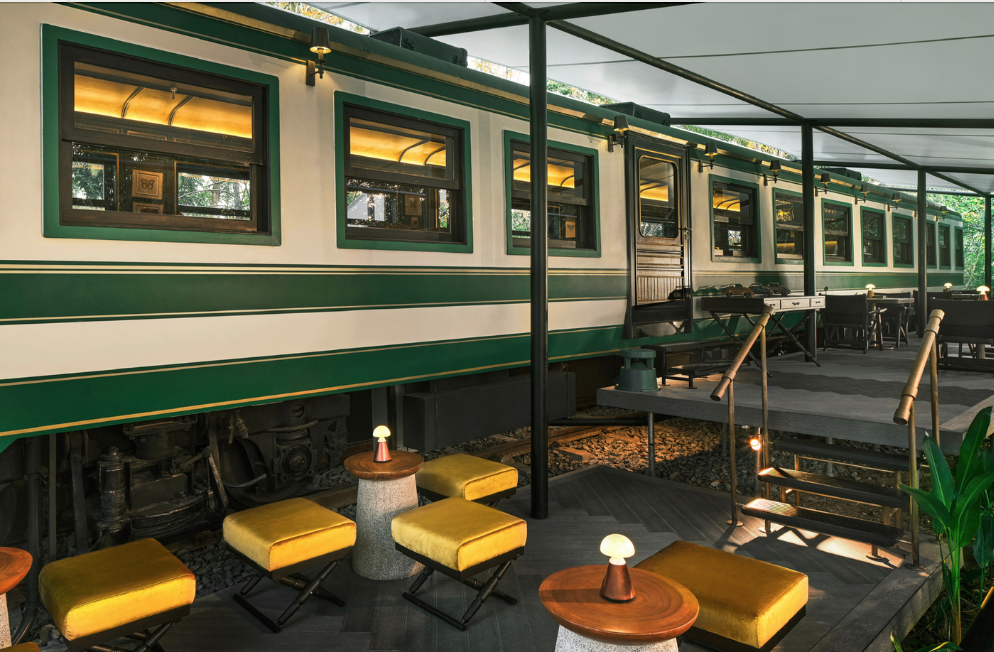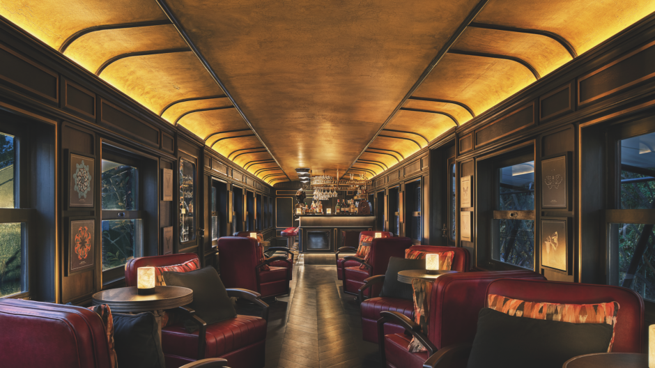 The resort’s architecture and interior design pay homage to the golden age of train travel while seamlessly integrating with the natural landscape. True to Bensley’s signature style, the property tells a story through every detail, from upcycled train carriages transformed into luxurious suites to interiors inspired by the rugged elegance of railway journeys. The result is a perfect harmony of nostalgia and nature, where reclaimed materials and sustainable practices coexist with decadent comfort.