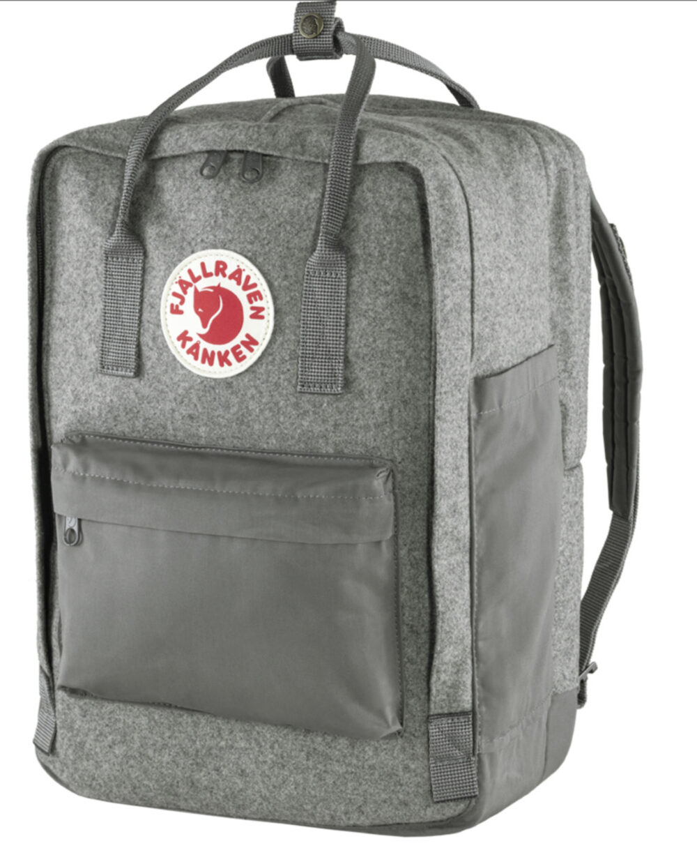 The new Kånken Re-Wool Laptop rucksack is a special version of the cult classic Kånken, made from recycled wool with a padded laptop compartment. Using traditional methods, spill from the wool textile industry is transformed into a high quality Melton fabric. The back panel, base, pockets and lining are all in G-1000 HeavyDuty Eco S, as are the padded shoulder straps and seat pad.
