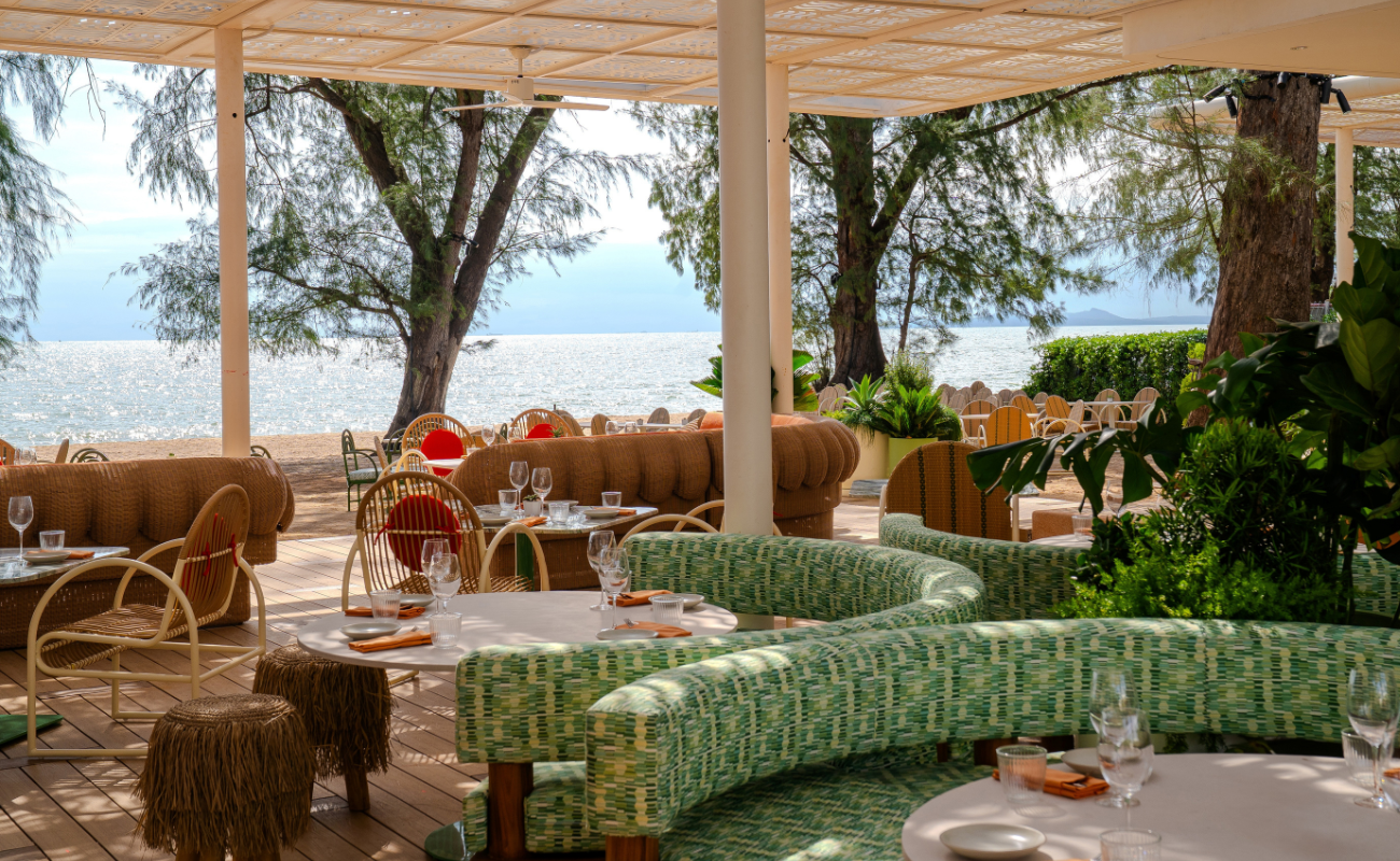 Everything pulls towards the shoreline. The pool acts as a threshold, and beyond it, the beach becomes the hotel’s focal point. This is where Esmé comes into its own. The brand’s first beach club blends Mexican flavours with Thai ingredients, set within a space of earthy materials, soft textures and uninterrupted sea views. The soundtrack drifts from background to foreground as the day unfolds.