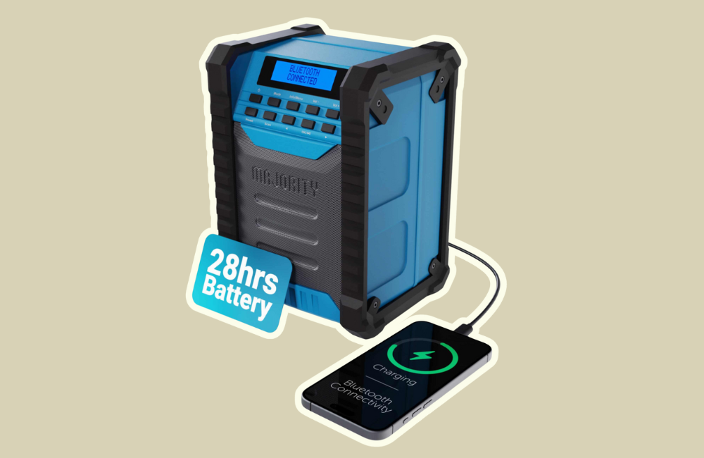 A robust and versatile portable radio with DAB+, FM, and Bluetooth functionality. The Majority Work Radio is perfect for both indoor and outdoor spaces, offering strong sound, retro styling, and long-lasting battery life. Built tough with a timeless look.