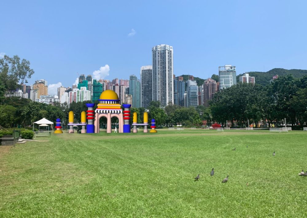 Drawing on influences of the Memphis Movement, Walala fuses vibrant colours and bold patterns, combining optimistic typography and exuberant geometries to transform Victoria Park into a Londonish Manor that stimulates the senses and inspires joy. Starting from the uniquely patterned Water Fountain at the park’s main entrance, you can enjoy the fresh green and breeze of the manor through the Memphis-styled Boulevard leading to the central lawn, where you will be greeted the exotic inflated ‘Walala Mansions’ enlightened with playful furniture sets. The mansion stands in the bustling heart of Causeway Bay to provide a unique place for the enjoyment of passers-by, as it delightfully contrasts with surrounding modernistic-styled office and residential blocks, adding something whimsical and colourful to the cityscape.